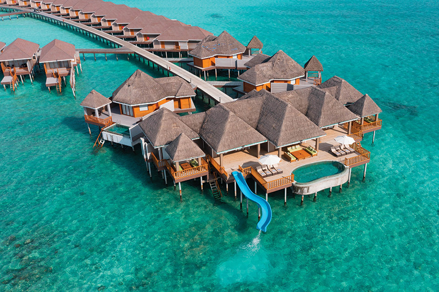 Brennia Kottefaru feels like the kind of island travellers imagine long before they arrive in the Maldives. Set within the clear waters of Raa Atoll, this expansive 12 hectare retreat appears almost untouched, framed by one of the widest natural beaches in the region and a lagoon that shifts from pale turquoise to deep sapphire as the day unfolds. Arrival is by seaplane from Velana International Airport, a forty minute journey that sets the tone as coral reefs and scattered islands glide past beneath the wings.Life at Brennia is shaped by space and freedom. The resort’s 187 villas and suites are spread generously across the island, offering a rare sense of privacy. Garden Villas are hidden among tropical greenery, beachfront retreats open directly onto powder soft sand and overwater villas extend gracefully above the lagoon. At the very top sits the Presidential Suite, a playful yet indulgent residence complete with its own slide into the sea. Wherever couples choose to stay, the emphasis is on calm, comfort and connection to the natural surroundings. Overwater villas remain one of the most coveted experiences. Suspended above clear water, they invite guests to fall asleep to the rhythm of the sea and wake to endless blue horizons. Interiors are finished in warm wood tones inspired by local craftsmanship, while private decks lead directly into the lagoon.