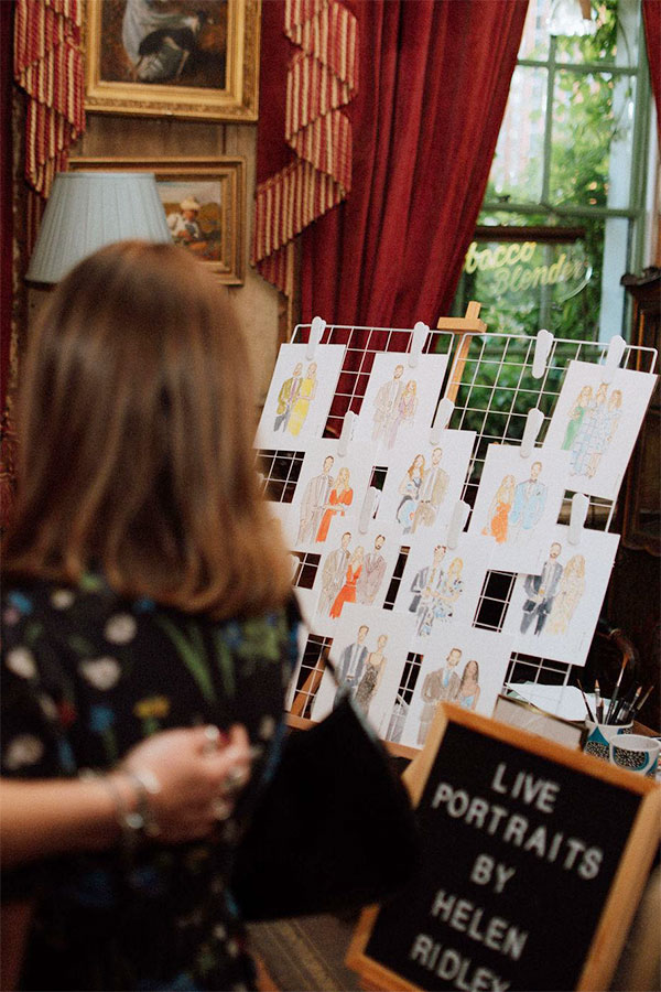 Everyone makes such an effort to look fantastic on your wedding day, so booking a live portrait artist will mean they will get a beautiful memento of your day, plus a portrait that captures their outfit and makes them feel loved and appreciated.